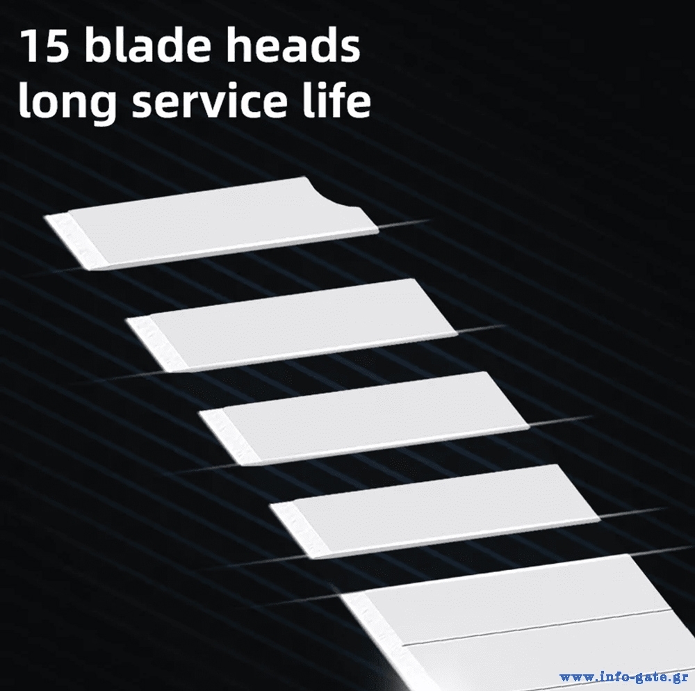 Η κάθε λεπίδα χωρίζεται σε 15 μέρη, ώστε, αφαιρώντας το φθαρμένο άκρο, να έχετε νέα λεπίδα ξανά.