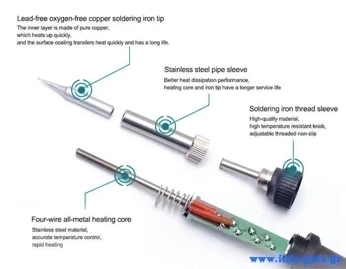 -εμβέλεια θερμοκρασίας: κολλητήρι: 100~480 °C, πιστόλι θερμού αέρα: 100~500 °C