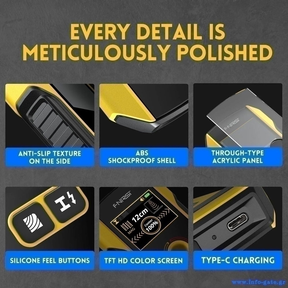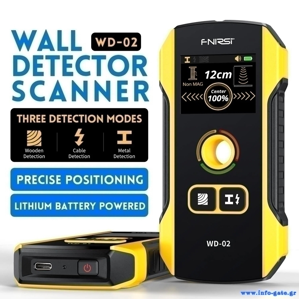 FNIRSI ψηφιακός αναλυτής τοίχου WD-02, ανίχνευση μετάλλου/ξύλου/καλωδίων, επαναφορτιζόμενος