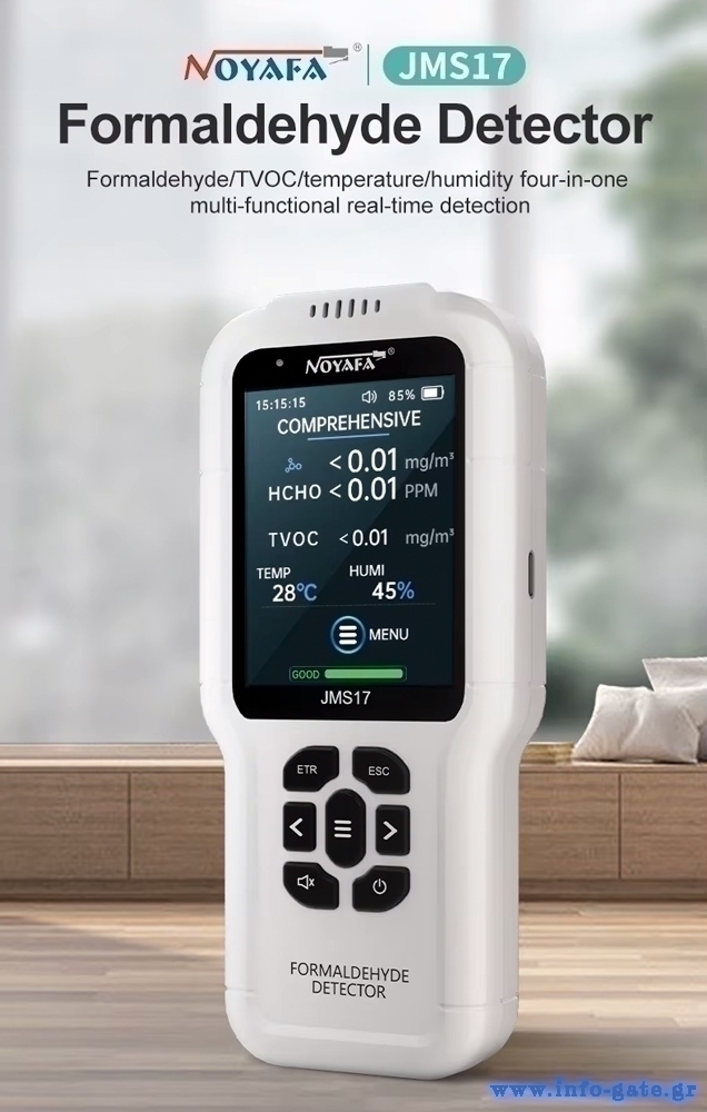 Το JMS17 είναι ένα χρήσιμο εργαλείο που μπορεί να μετρήσει ταυτόχρονα την ποιότητα του αέρα (μετρώντας τη συγκέντρωση της φορμαλδεΰδης και της οργανικής ύλης), τη θερμοκρασία και την υγρασία περιβάλλοντος.