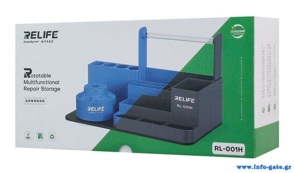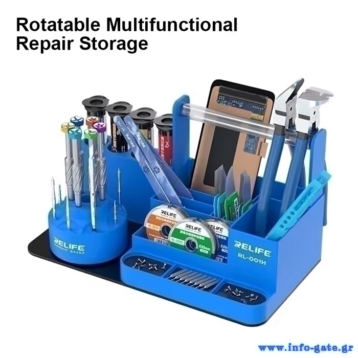 Αυτή η βάση της Relife προσφέρει χώρο για την οργάνωση εργαλείων που χρησιμοποιούνται σε εργασίες επισκευής κινητών.
