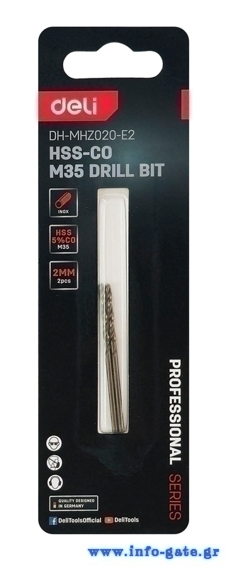 DELI σετ τρυπάνια DH-MHZ020-E2 για μέταλλο, M35 HSS 5% κοβαλτίου, DIN 388, 2x49mm, κυλινδρικό, 2τμχ