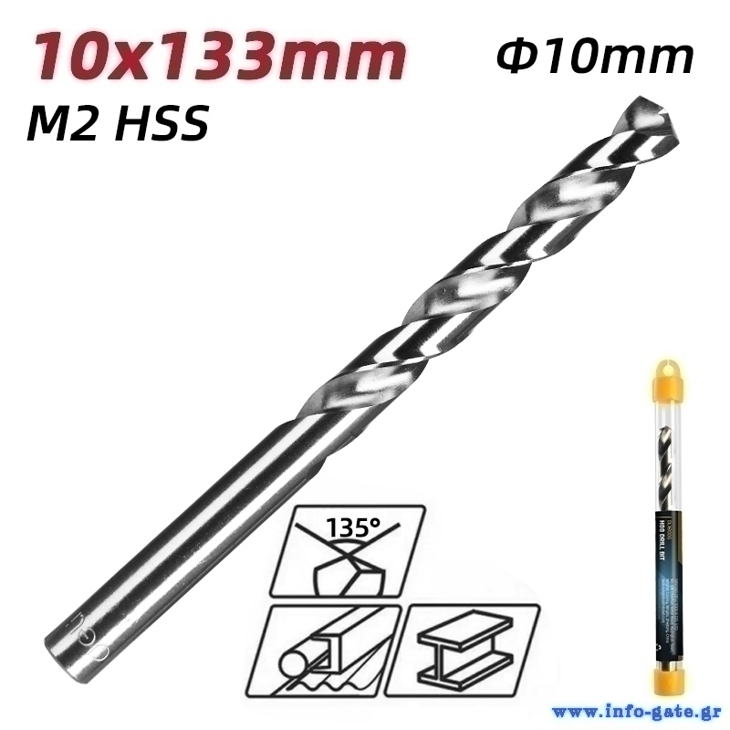 DELI τρυπάνι DL16100G για μέταλλο, M2 HSS, 10x133mm, κυλινδρικό