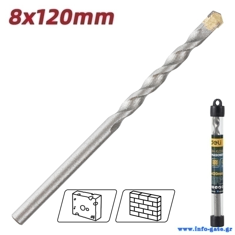 DELI τρυπάνι DH-JGZ080-E1 για τοίχο, 40Cr YG6, 8x120mm, κυλινδρικό