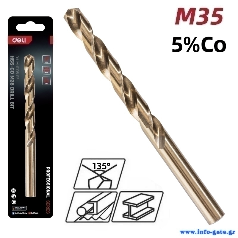 DELI τρυπάνι DH-MHZ100-E2 για μέταλλο, M35 HSS 5% κοβαλτίου, DIN 388, 10x133mm, κυλινδρικό