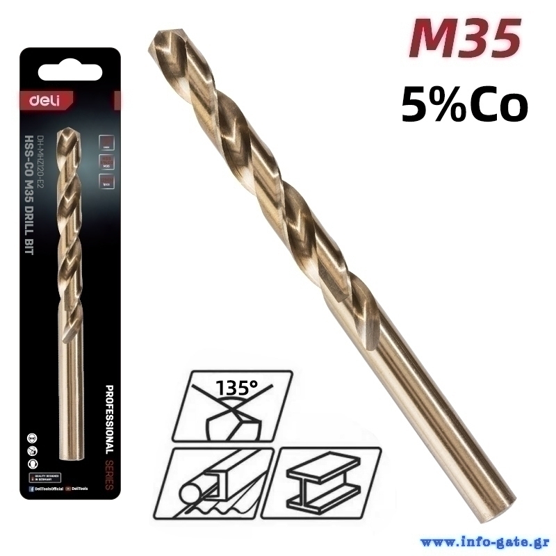 DELI τρυπάνι DH-MHZ120-E2 για μέταλλο, M35 HSS 5% κοβαλτίου, DIN 388, 12x151mm, κυλινδρικό