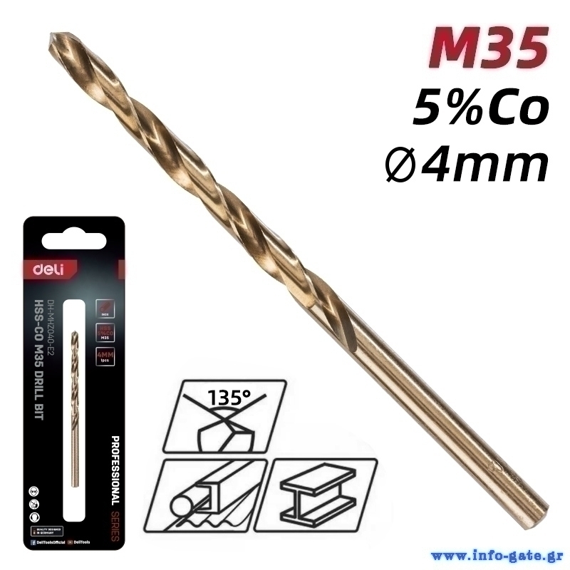 DELI τρυπάνι DH-MHZ040-E2 για μέταλλο, M35 HSS 5% κοβαλτίου, DIN 388, 4x75mm, κυλινδρικό