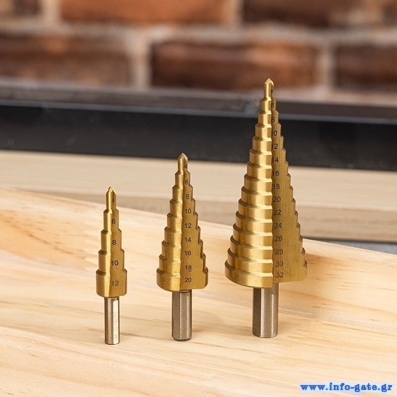 DELI σετ κωνικά τρυπάνια DH-JTZ0003-ED1 για μέταλλο, HSS 4241, 4-12/4-20/4-32mm, κυλινδρικό, 3τμχ