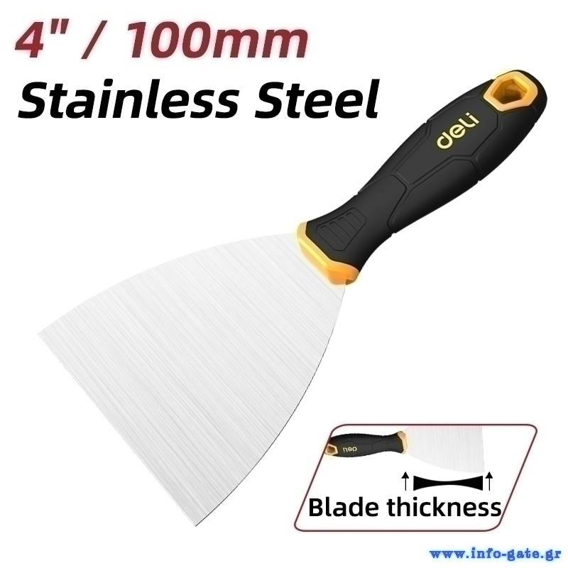 DELI σπάτουλα DL-HD4 με αντιολισθητική λαβή, ανοξείδωτο ατσάλι, 100mm