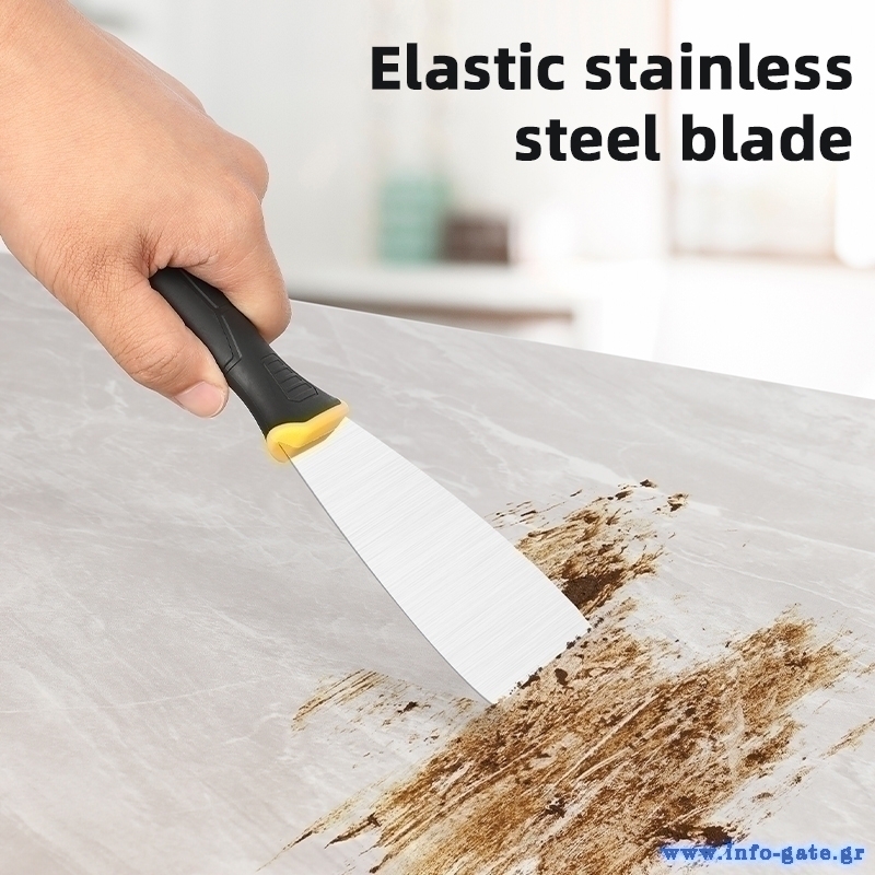 Σπάτουλα της DELI με ανθεκτική λάμα από ανοξείδωτο ατσάλι και άνετη αντιολισθητική λαβή. Είναι ιδανική για εργασίες στόκου, σοβά, αφαίρεσης βαφής και άλλες εφαρμογές.