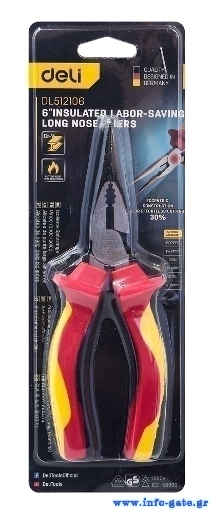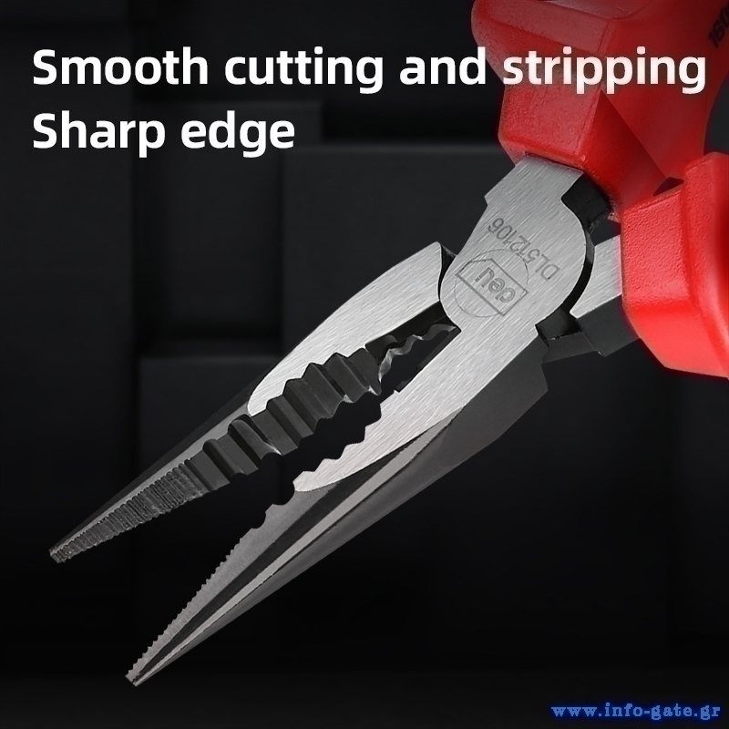 Μυτοτσίμπιδο ίσιο ηλεκτρολόγου της Deli σχεδιασμένο για ασφαλή και αποδοτική εργασία σε ηλεκτρικές εγκαταστάσεις.