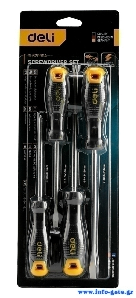 Σετ κατσαβιδιών της Deli, ιδανικά για ποικιλία εργασιών σε επαγγελματικό ή οικιακό περιβάλλον.