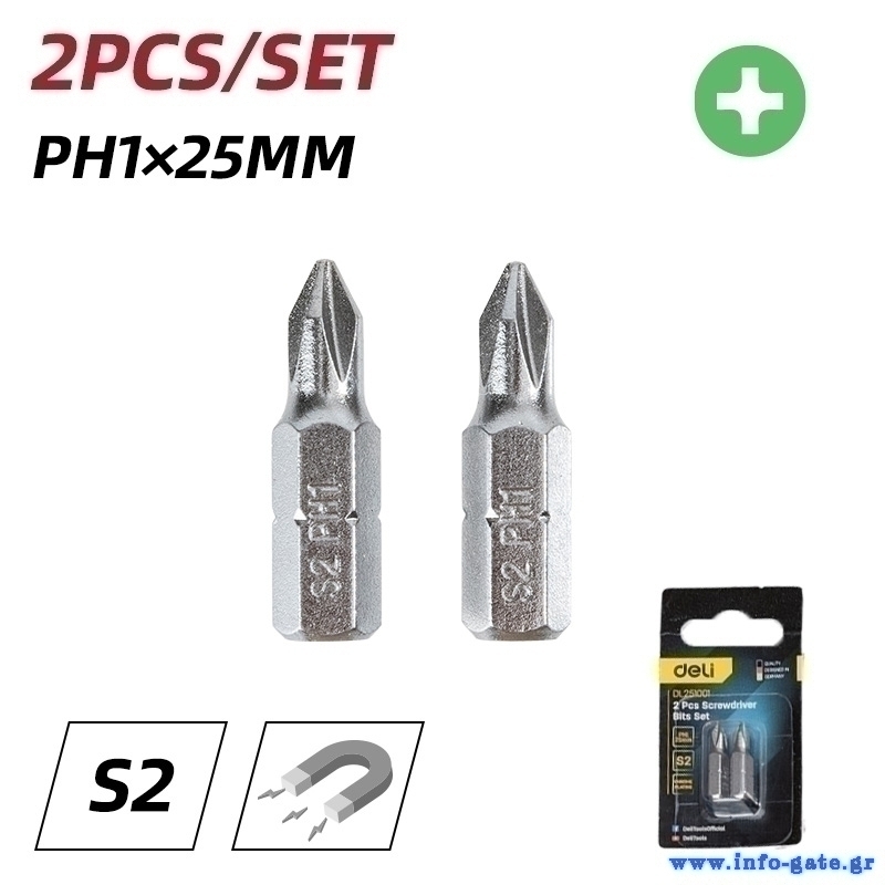 DELI σετ μύτες κατσαβιδιού DL251001, μαγνητικές, PH1x25mm, 2τμχ