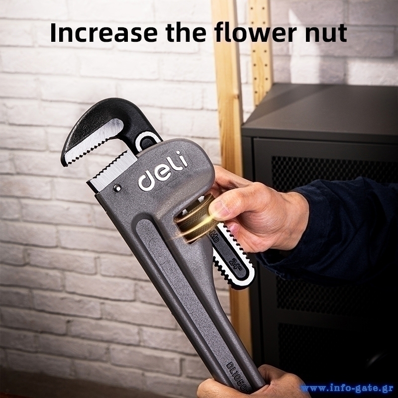 Κάβουρας υδραυλικού της Deli με μεταβλητή δαγκάνα έως 73mm, κατάλληλος για χρήση με σωληνώσεις και άλλα εξαρτήματα διαφορετικών διαστάσεων.