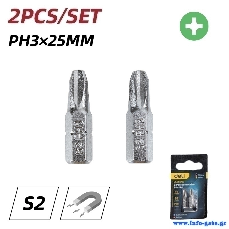DELI σετ μύτες κατσαβιδιού DL251003, μαγνητικές, PH3x25mm, 2τμχ