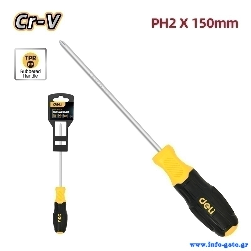 DELI κατσαβίδι σταυρωτό DL636150N με αντιολισθητική λαβή, μαγνητικό, PH2x150mm