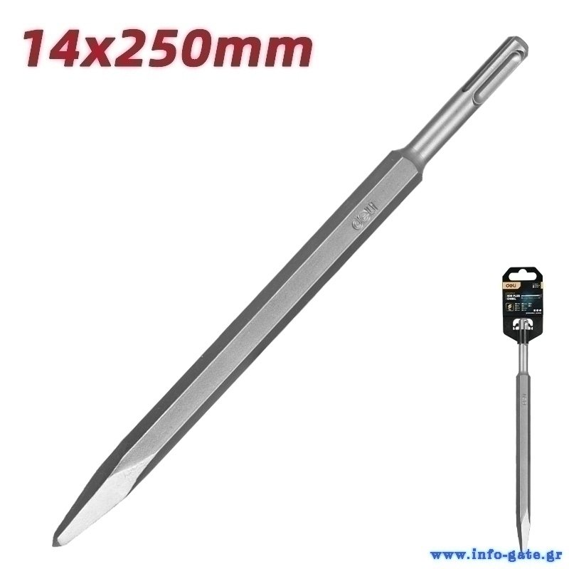 Βελόνι της Deli με SDS Plus στέλεχος για κρουστικό δράπανο, ιδανικό για εργασίες σκαλίσματος και καθαίρεσης σε μπετόν.
