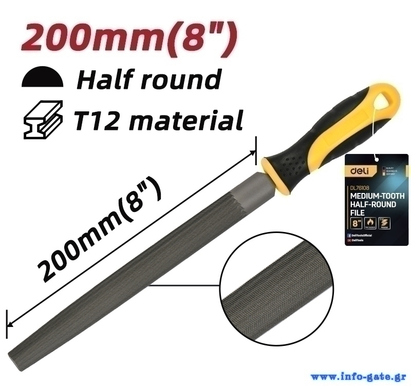 DELI λίμα ημιστρόγγυλη DL76108 με αντιολισθητική λαβή, μετάλλου, 200mm