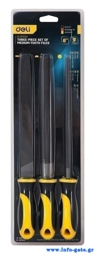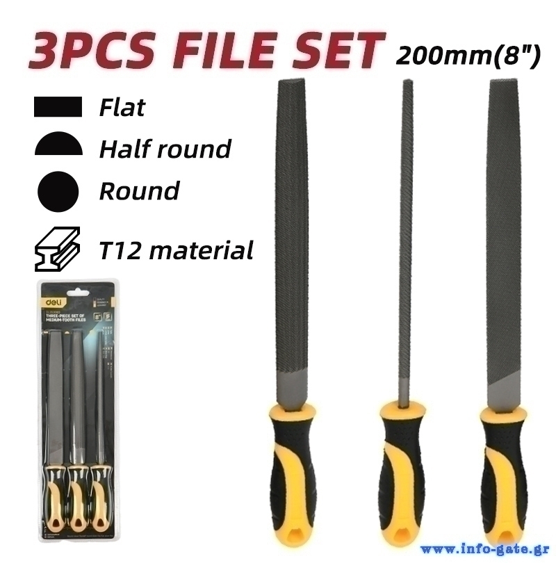 DELI σετ λίμες DL75108 με αντιολισθητική λαβή, μετάλλου, 200mm, 3τμχ