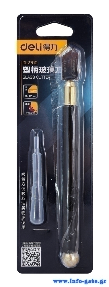 Υαλοκόπτης λαδιού της Deli σχεδιασμένος για εύκολη και ακριβή κοπή γυαλιού πάχους 3-12mm.