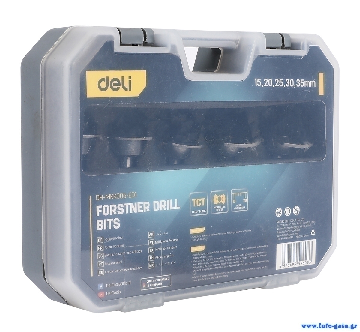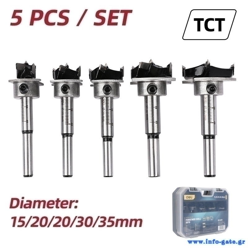 DELI σετ τρυπάνια μεντεσέ DH-MKK005-ED1 για ξύλο/πλαστικό, TCT λεπίδα, 15-35mm, 5τμχ
