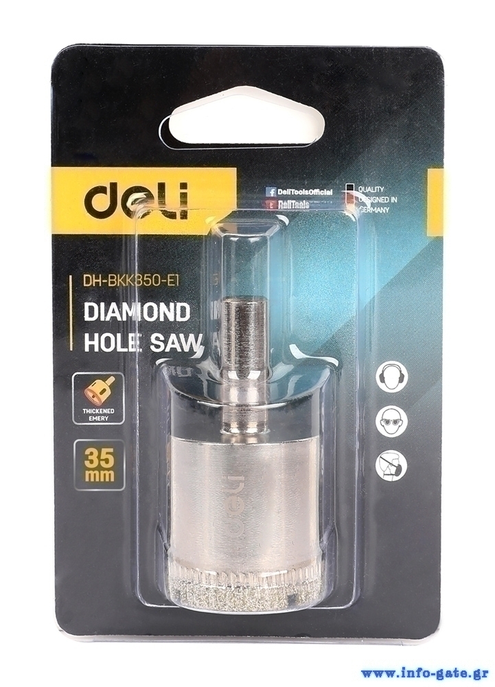 DELI ποτηροτρύπανο διαμαντέ DH-BKK350-E1 για πλακάκια/γυαλί, 35mm διάμετρος