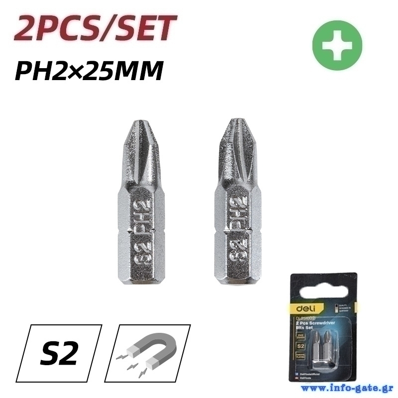 DELI σετ μύτες κατσαβιδιού DL251002, μαγνητικές, PH2x25mm, 2τμχ