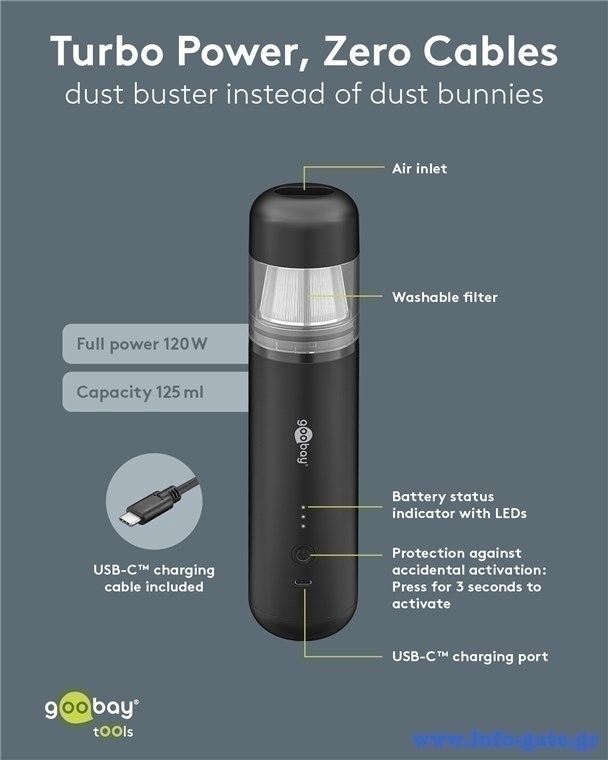 GOOBAY 2 σε 1 σκουπάκι χειρός & air duster 77829, 120W, 6000mAh, μαύρο