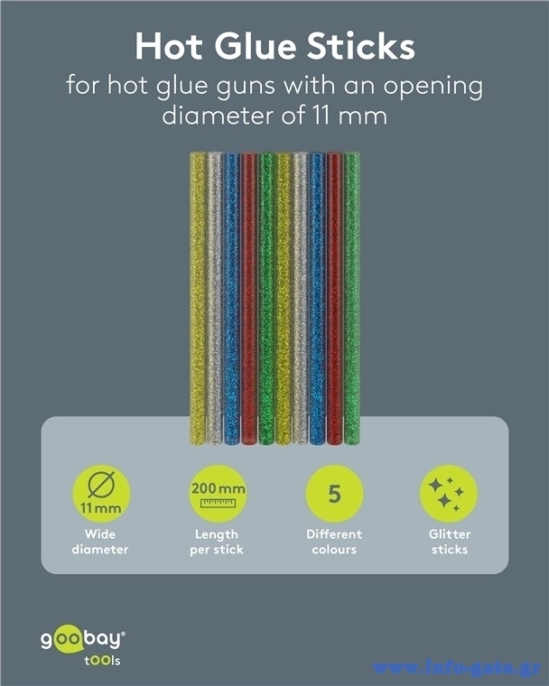 GOOBAY ράβδοι σιλικόνης 77855, Φ11mm x 200mm, glitter διάφορα χρώματα, 10τμχ