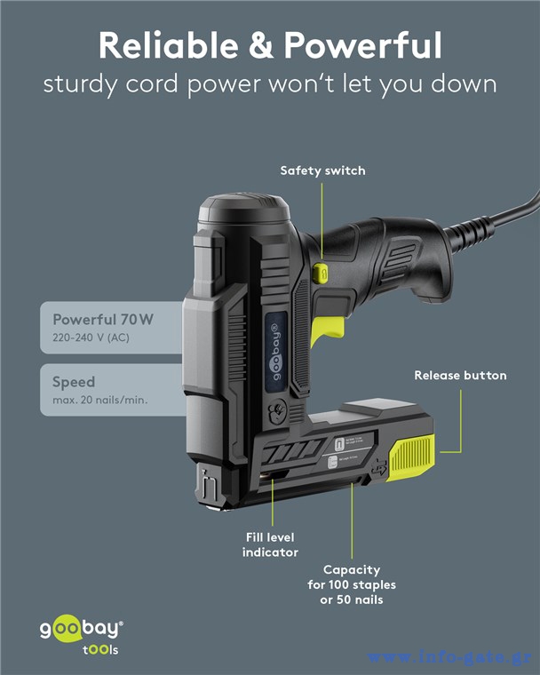 GOOBAY ηλεκτρικό καρφωτικό για καρφιά & συνδετήρες 77820, 70W