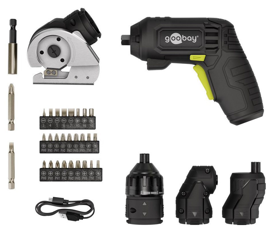 GOOBAY 4 σε 1 κατσαβίδι μπαταρίας με μύτες & εξαρτήματα 77817, LED φακός, 1500mAh