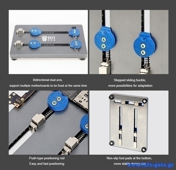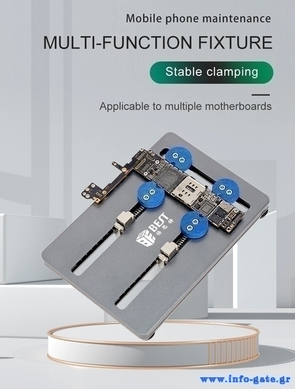 Βάση επισκευής motherboard κινητών από την Best. Συγκρατεί σταθερές τις motherboard, ενώ στο κάτω μέρος τις διαθέτει αντιολισθητικά πόδια για να μην μετακινείται κατά την διάρκεια των επισκευών.