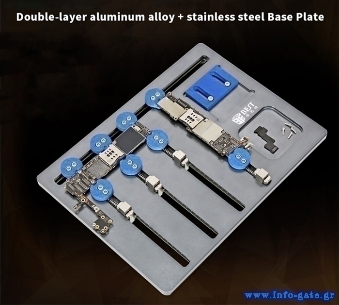 Βάση επισκευής motherboard κινητών από την Best. Συγκρατεί σταθερές τις motherboard, ενώ στο κάτω μέρος τις διαθέτει αντιολισθητικά πόδια για να μην μετακινείται κατά την διάρκεια των επισκευών.