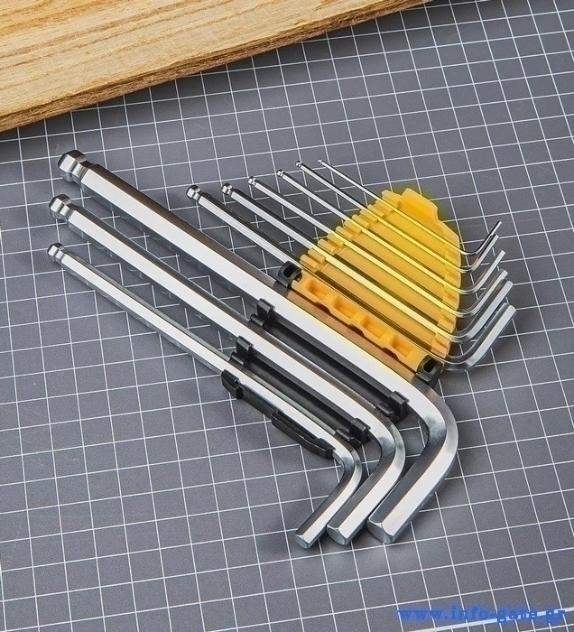 Σετ από την Deli που αποτελείται από 9 διαφορετικά εξάγωνα κλειδιά τύπου Allen με μπίλια και μακρύ βραχίονα.