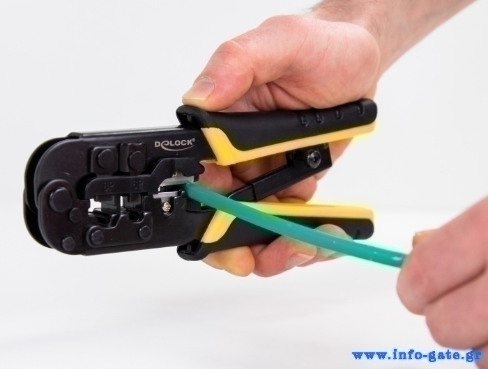 Πολυλειτουργικό εργαλείο της Delock, κατάλληλο για πτύχωση, απογύμνωση και κοπή βυσμάτων 8P (RJ45), 6P (RJ12 / 11) ή 4P. Οι τρεις ενσωματωμένες λεπίδες εξασφαλίζουν την απρόσκοπτη απογύμνωση των καλωδίων και κοπή των strands. Επιπλέον, τα στρογγυλά καλώδια διαμέτρου έως 5,5mm και τα επίπεδα καλώδια πλάτους έως 12,7mm μπορούν να αφαιρεθούν ή να κοπούν πλήρως.