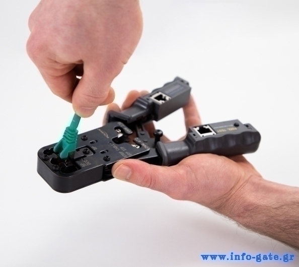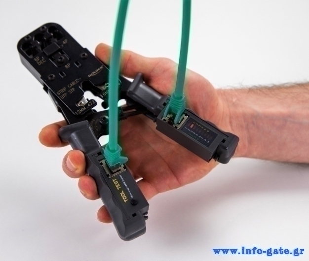 Διαθέτει ενδείξεις LED για τον έλεγχο των pin της καλωδίωσης ανάλογα με τον τύπο του βύσματος (1 - 8 +G για RJ45, 1 - 6 για RJ11 και 1 - 4 για RJ10).