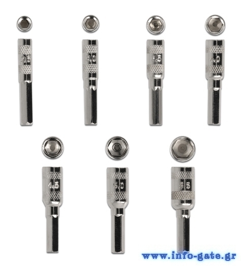7x bit external hexagon: 2.5, 3.0, 3.5, 4.0, 4.5, 5.0, 5.5mm