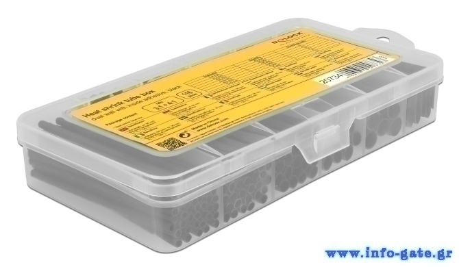 Το σετ αποτελείται από έξι διαφορετικές διαμέτρους και δυο διαφορετικούς λόγους συρρίκνωσης, στο ένα τέταρτο και στο ένα τρίτο της αρχικής του διαμέτρου, με την χρήση πιστολιού θερμού αέρος. Διατίθεται σε πρακτικό κουτί αποθήκευσης ιδανικό για την ταξινόμηση και προστασία των μονωτικών το οποίο μπορεί να επαναχρησιμοποιηθεί για την αποθήκευση διαφόρων αξεσουάρ.