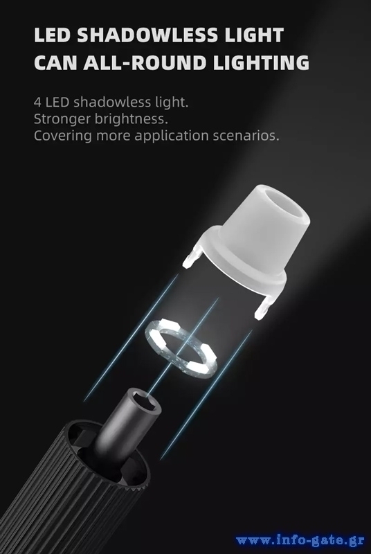 Η κεφαλή μπορεί να περιστρέφεται δεξιόστροφα ή αριστερόστροφα και εξοπλίζεται με βολικό LED φακό για άνετη εργασία ακόμη και στο σκοτάδι.