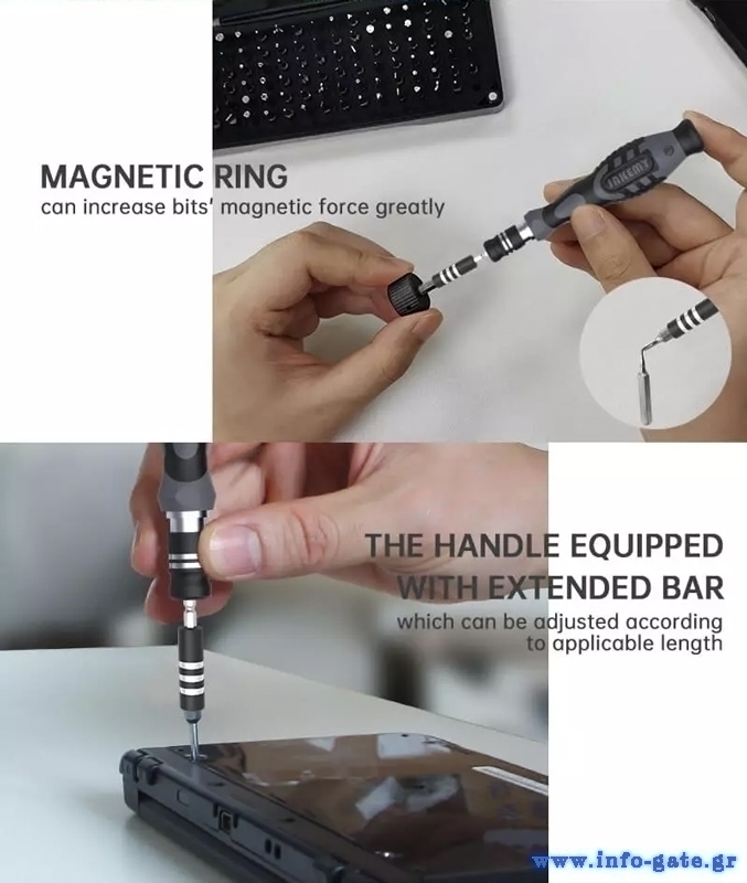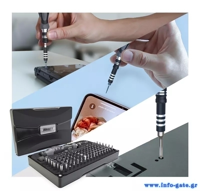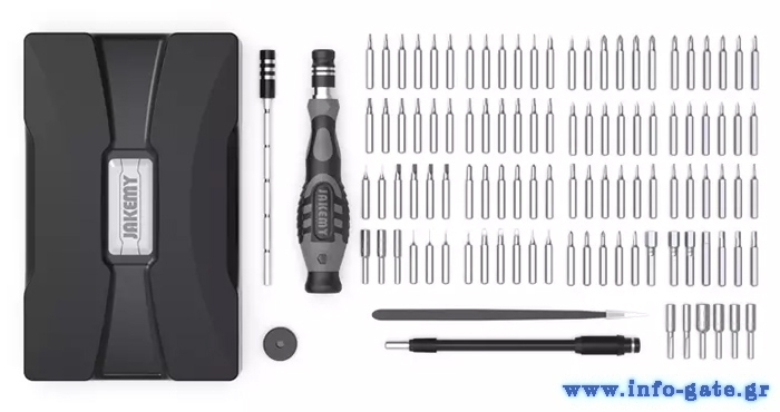 Σετ κατσαβιδιών της Jakemy το οποίο αποτελείται από κατσαβίδι, προέκταση, μαγνητιστή, τσιμπίδα και 30 διαφορετικές μύτες κατσαβιδιού.