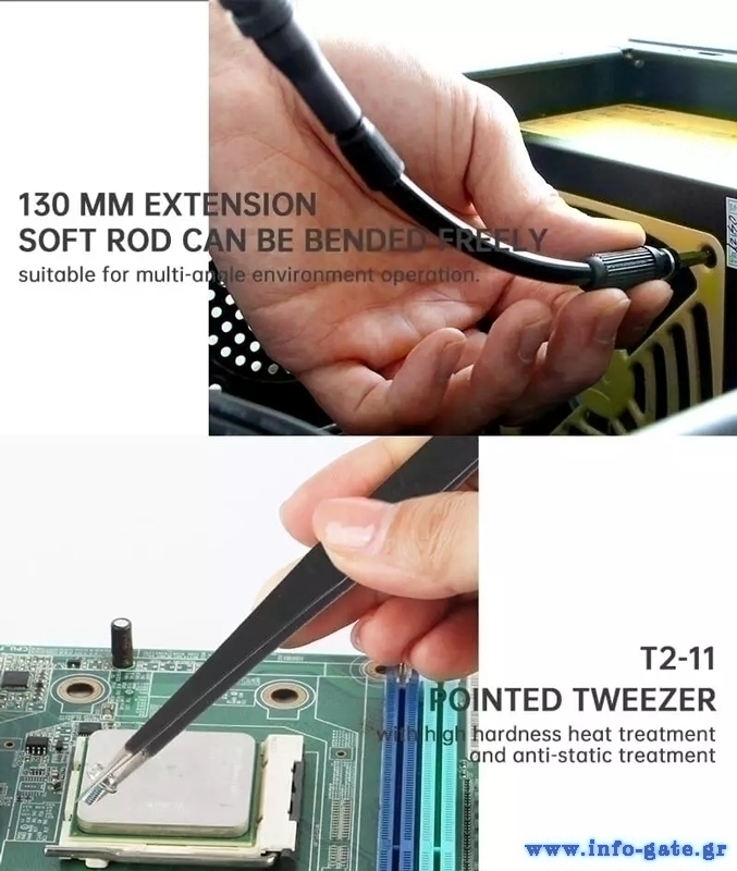 Το κατσαβίδι διαθέτει επιφάνεια λαβής από αντιολισθητικό υλικό και κυκλικό περιστρεφόμενο σύνδεσμο.