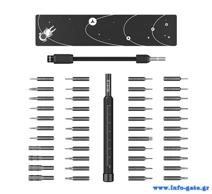 Σετ κατσαβιδιών της Jakemy το οποίο αποτελείται από κατσαβίδι, προέκταση, μαγνητικό φύλλο και 30 διαφορετικές μύτες κατσαβιδιού.
