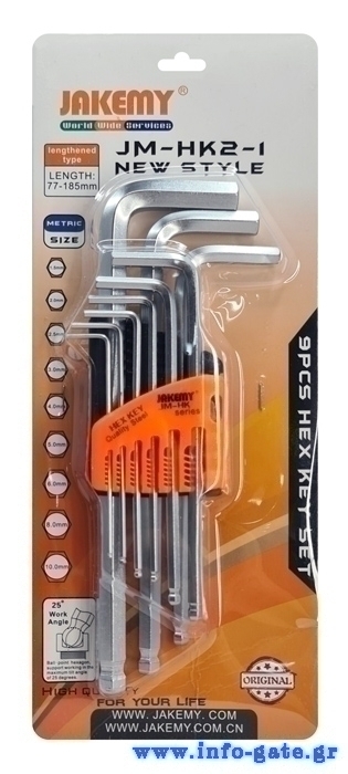 Σετ από την Jakemy που αποτελείται από 9 διαφορετικά εξάγωνα κλειδιά τύπου Allen με μπίλια.