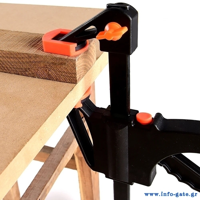 Εξοπλίζεται με σκανδάλη για εύκολη και σταδιακή σύσφιξη. Τα άκρα του είναι επενδυμένα από επεξεργασμένο πλαστικό με αντιολισθητικές ιδιότητες που δεν πληγώνει τα αντικείμενα.