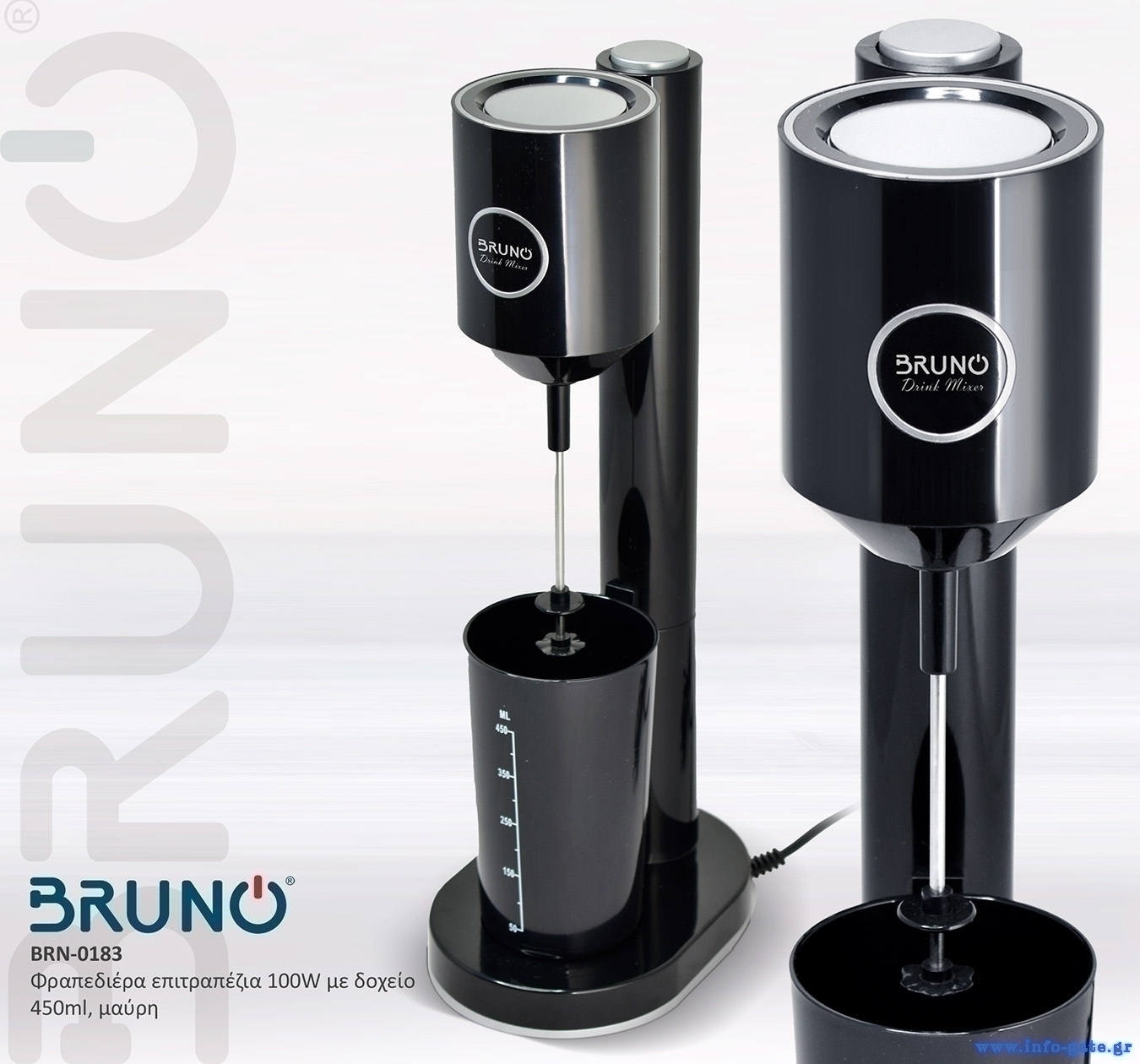 BRUNO φραπεδιέρα επιτραπέζια BRN-0183 100W με δοχείο 450ml, μαύρη