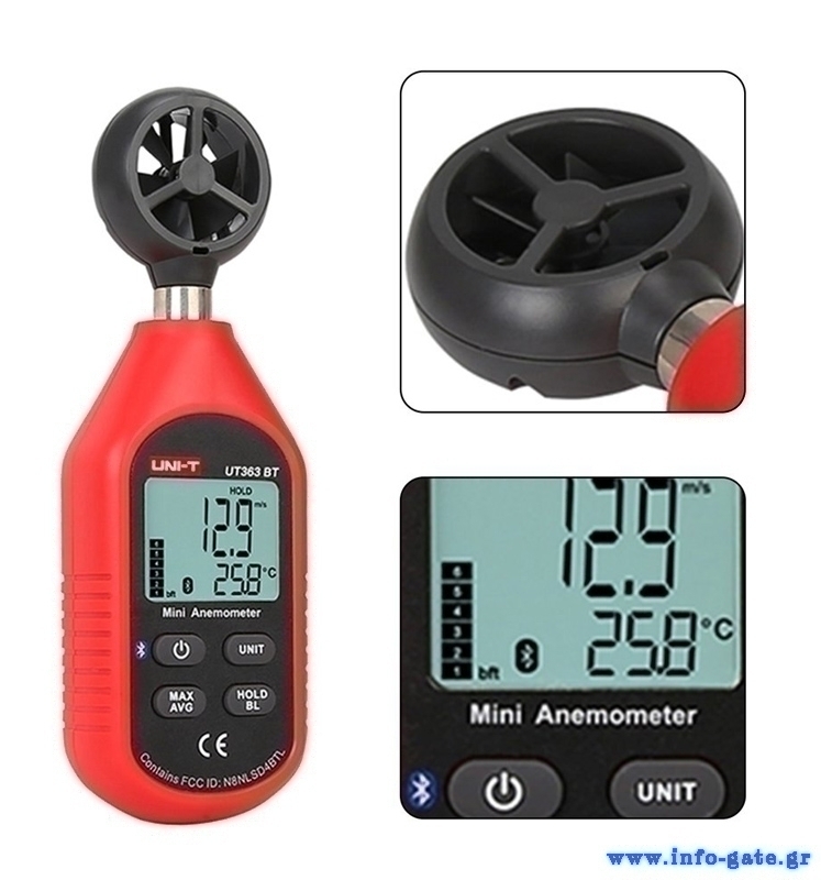 Το UT363BT είναι ένα μίνι ψηφιακό ανεμόμετρο το όποιο μπορεί να μετρήσει τη θερμοκρασία και την ταχύτητα του ανέμου έως 30m/s.