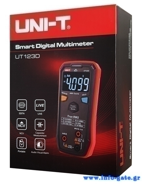 Το ψηφιακό πολύμετρο UT123D έχει σχεδιαστεί για να αναγνωρίζει αυτόματα τάση AC/DC, αντίσταση, δίοδο και την ροη του ρεύματος. Όλες οι λειτουργίες μέτρησης μπορούν να επιλεχτούν χειροκίνητα με το πάτημα ενός κουμπιού. Ο συμπαγής σχεδιασμός και η οθόνη EBTN το καθιστούν ένα εξαιρετικό εργαλείο για το σπίτι αλλά και την εργασία σε σκοτεινό περιβάλλον.