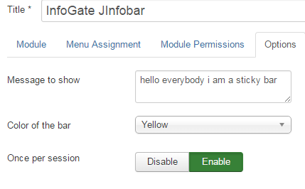 3. To tab "Options" you can select the color of the bar and the message that you wish to publish