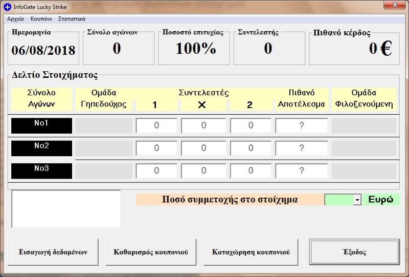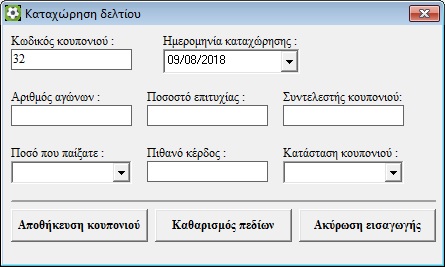 1. Θέλουμε εύκολα και γρήγορα να καταχωρούμε το κουπόνι που θα παίξουμε σε μία βάση δεδομένων. (Αυτό ολοκληρώθηκε 02/08/2018)