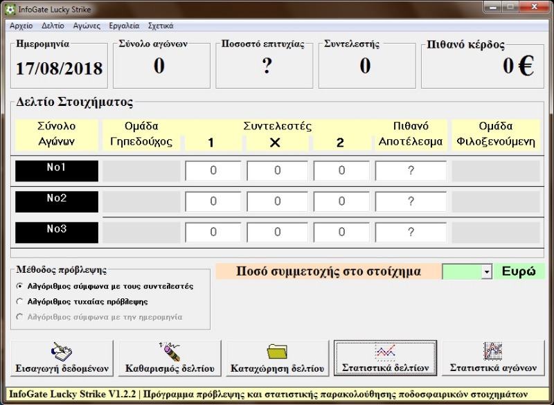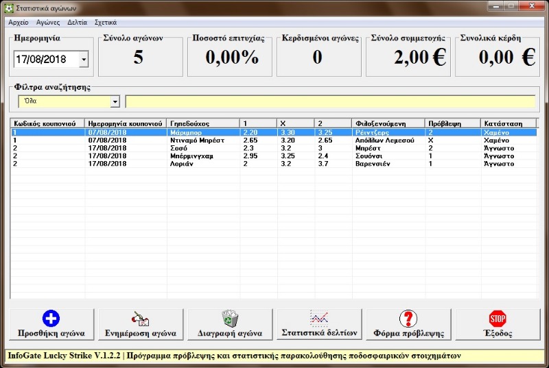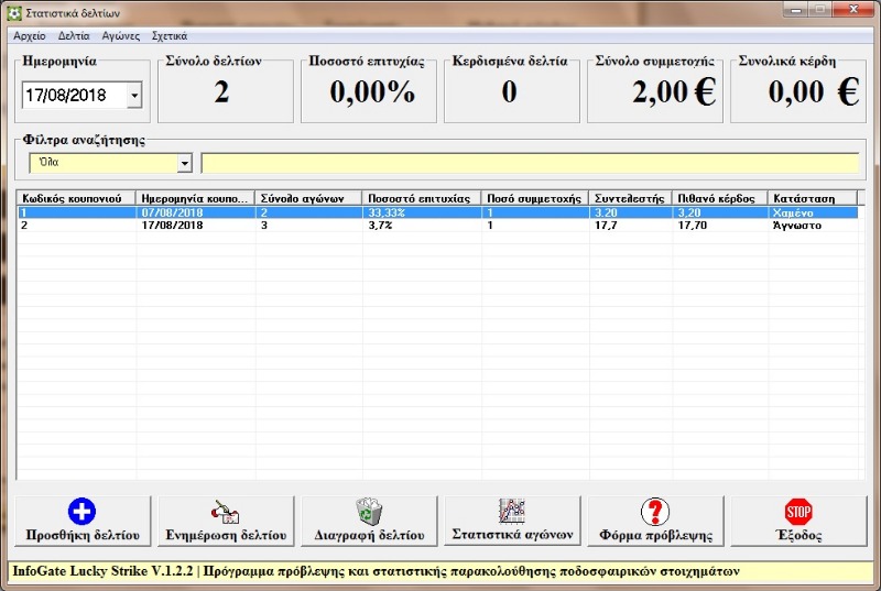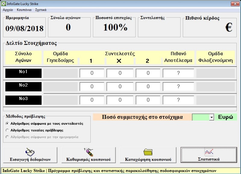 3. Ο χρήστης μπορεί να καταχωρήσει μέχρι και 3 ομάδες ανά κουπόνι και παρακολουθεί τις στατιστικές πιθανότητες κέρδους (Ολοκληρώθηκε 03/08/2018)